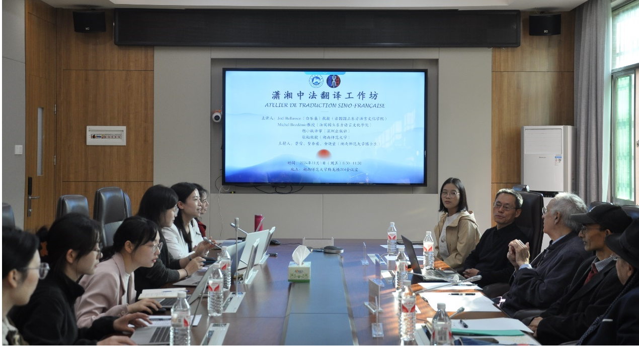 (通讯员 曹雪 李安然 刘盼)2024年11月1日上午,由必赢76net线路官网法语系主办的第二届“潇湘中法翻译工作坊”在腾龙楼204会议室隆重举行。本次活动特邀法国国立东方语言文化学院的Joël Bellassen(白乐桑)教授和Michel Bozdémir教授、深圳出版社胡小跃译审作为嘉宾,与必赢官网法语系学科带头人张弛教授共同主讲。活动由费乔荣(2021级)、曹雪(2022级)和金晓童(2023级)等三位在读博士生联合主持。